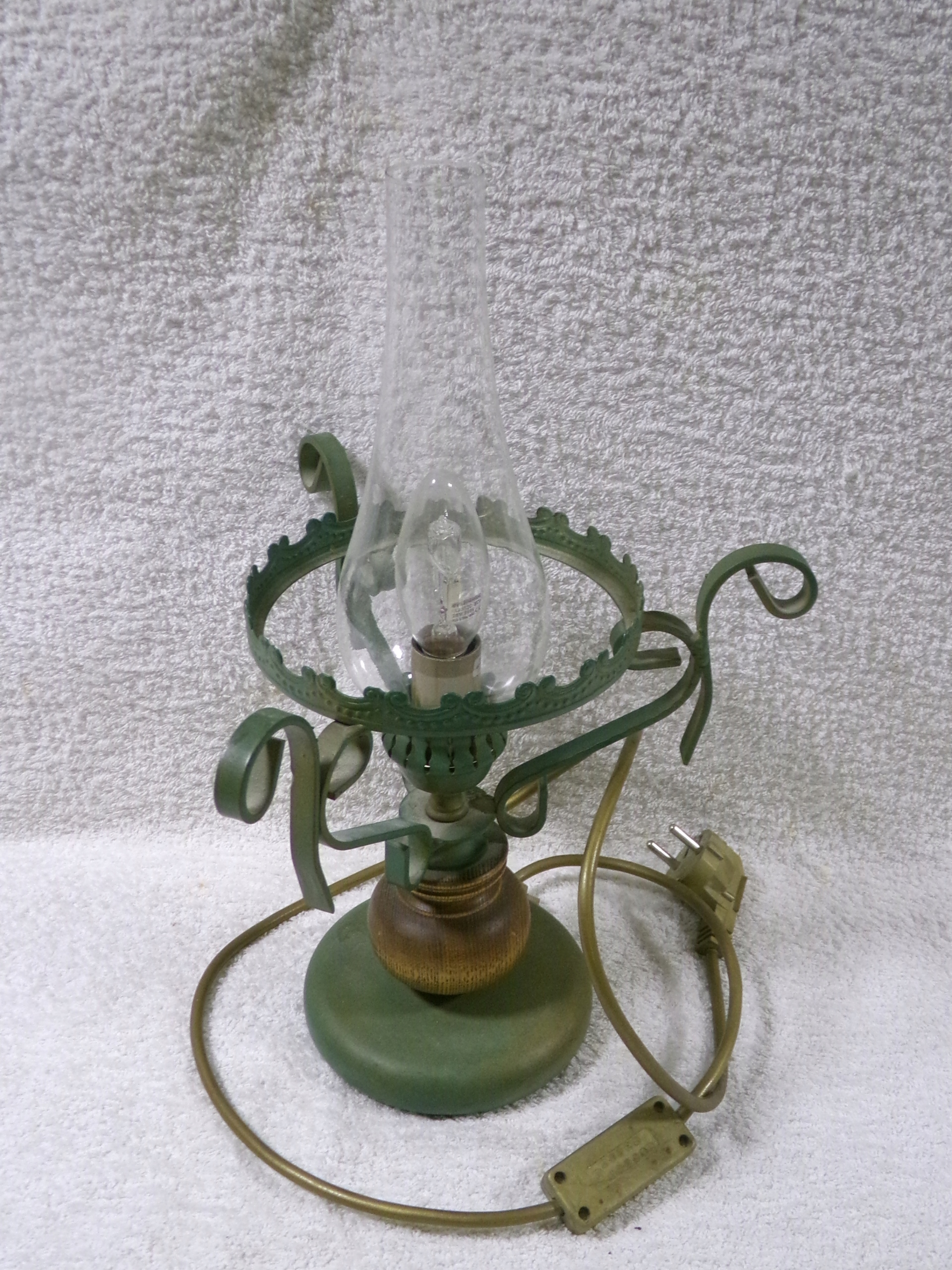 настільна лампа, виготовлена з металу та світильників, виготовленої з скла діаметром 22,5 см, висотою 39 см, вагою 1 кг. Capidly збережений, без пошкоджень, без ліхтарів ефективності.