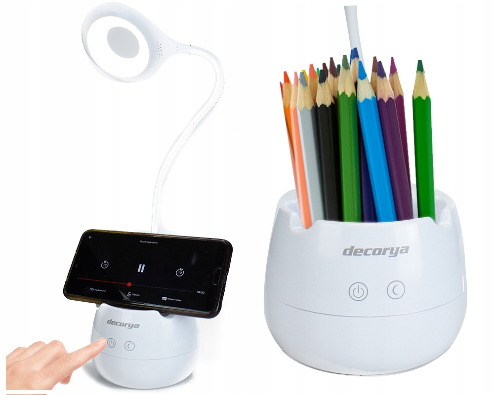СВІТЛОДІОДНА ЛАМПА З ПІДСТАВКОЮ ДЛЯ ТЕЛЕФОНУ ТА НАРЯЗКОМ ДЛЯ ІНСТРУМЕНТІВ ВІД DECORYA