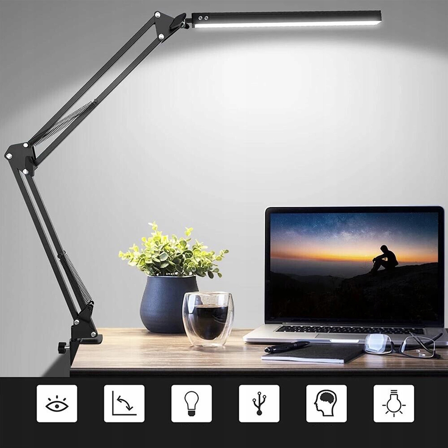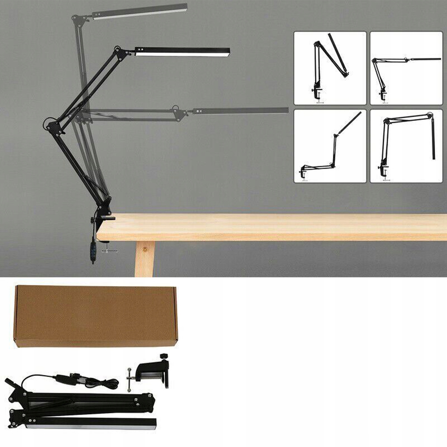 - ✔️Алюмінієвий затиск дозволяє прикріпити лампу до столу товщиною 5,8 см, що забезпечує чудову стабільність.
