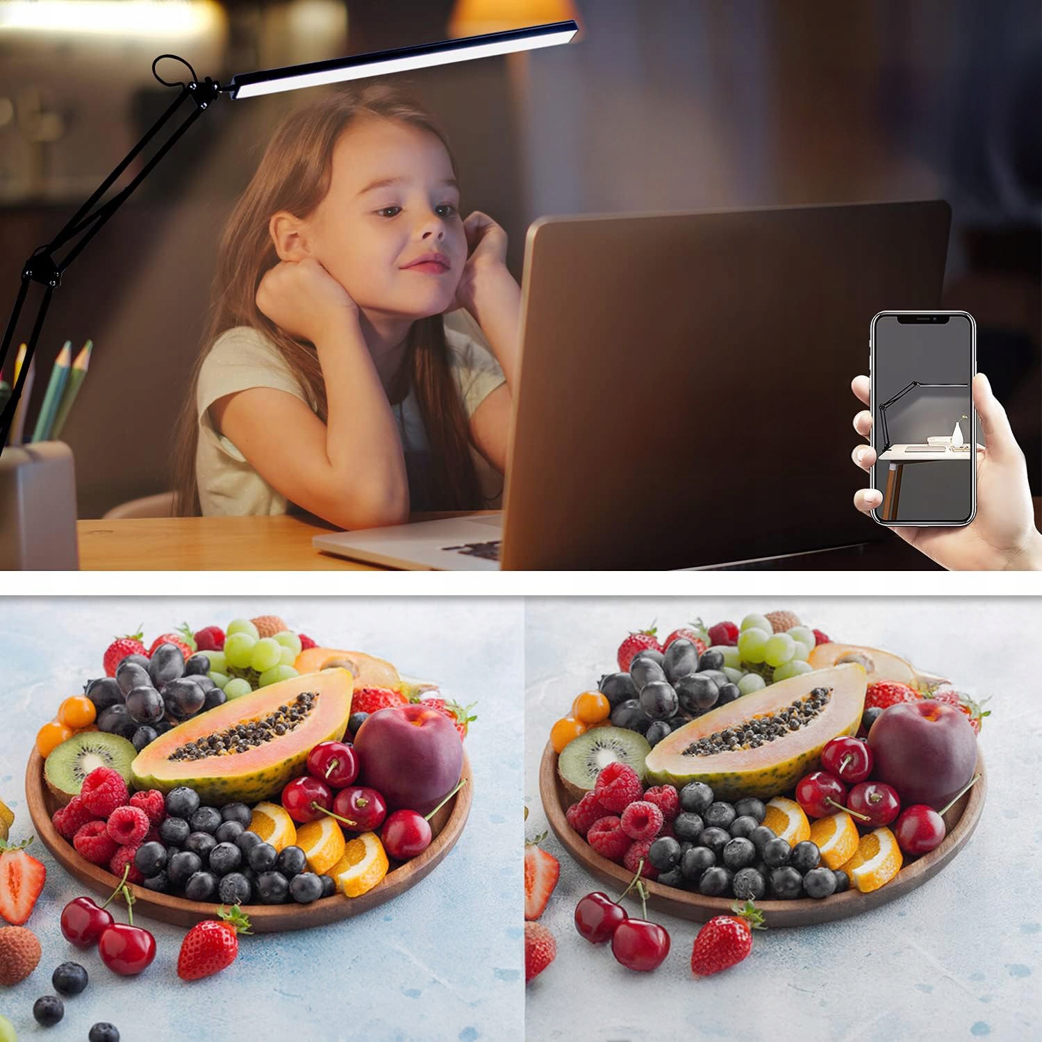 - ✔️ 80 світлодіодів забезпечують плавне та рівномірне освітлення, захищаючи очі та зменшуючи зорову втому.