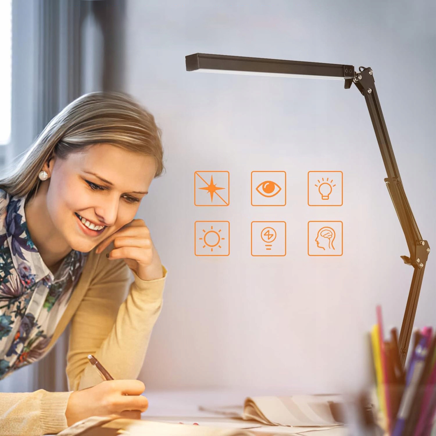 80 високоефективних світлодіодів забезпечують м’яке рівномірне освітлення, зменшуючи напругу очей і захищаючи їх. Настільна лампа без мерехтіння та відблисків, ідеальна для читання, навчання, роботи, малювання та DIY.