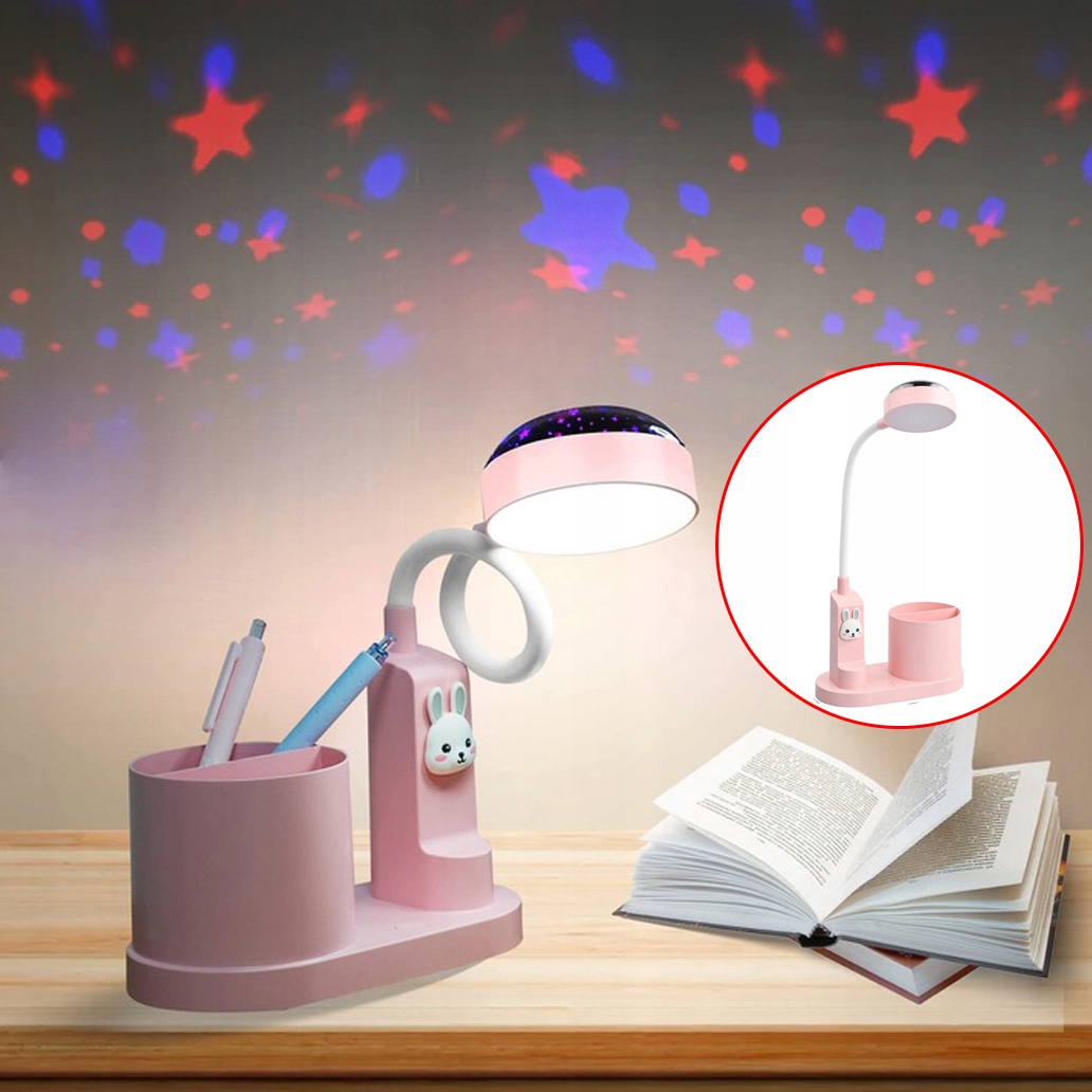 НАСТІЛЬНА ЛАМПА З ПРОЕКТОРОМ ЗІРОК ДЛЯ ДІТЕЙ РОЖЕВА LED USB