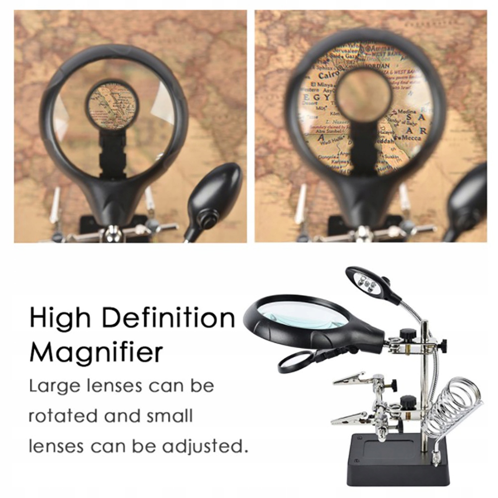 Настільна лупа, паяльна станція зі світлодіодним світлом, підставка зі збільшувальним склом із затискачем і кліпсами