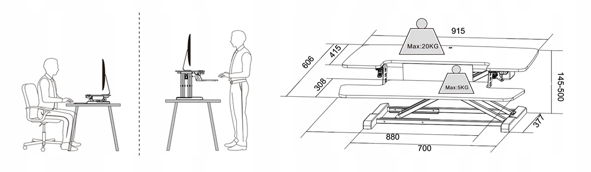 Вбудований двигун і високоякісні компоненти забезпечують плавну та стабільну зміну висоти, роблячи перехід від сидіння до стояння безпечнішим і надійніше, ніж товари інших виробників.