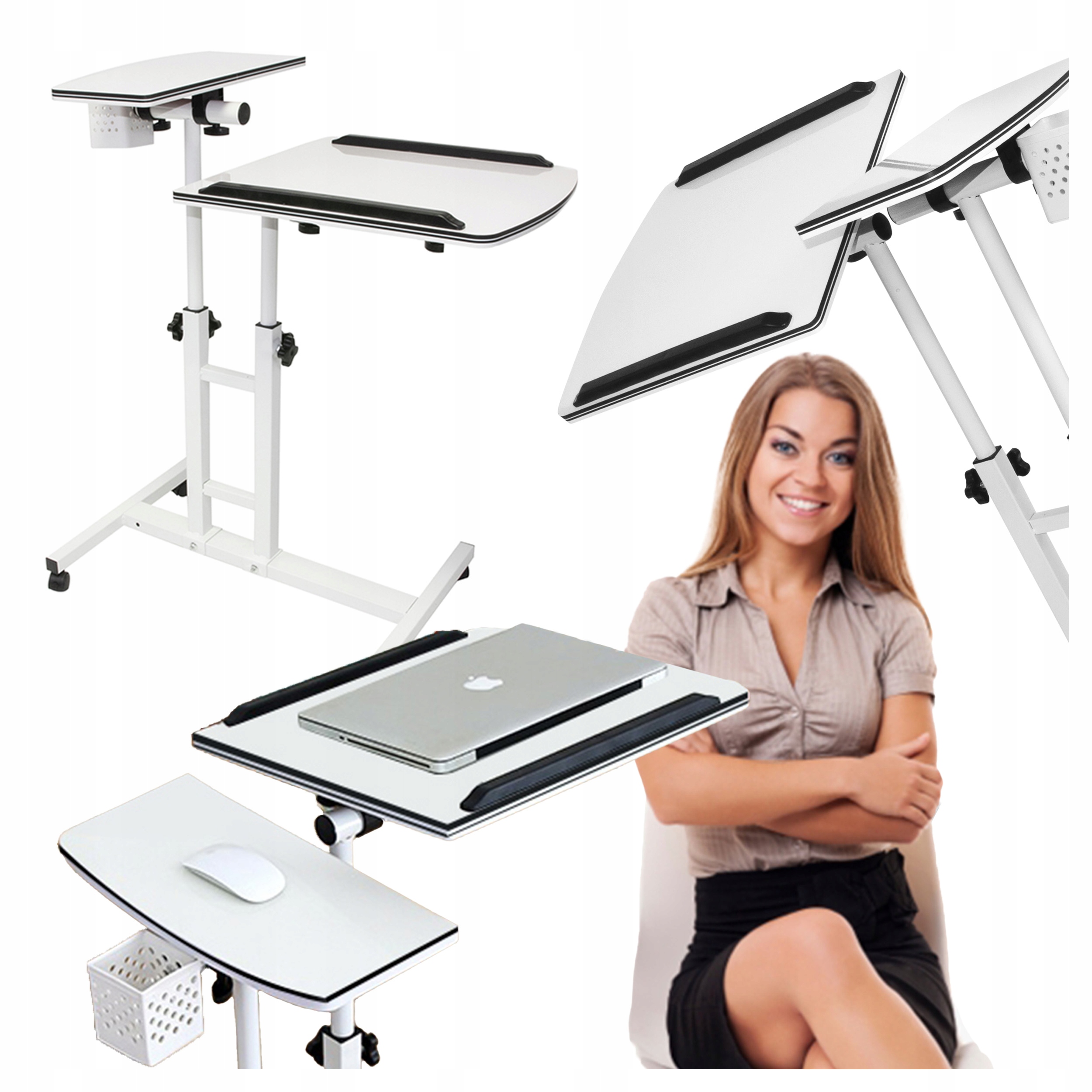 Настільна полиця для ноутбука на коліщатках. Мобільний стіл, регульований 2 верхи