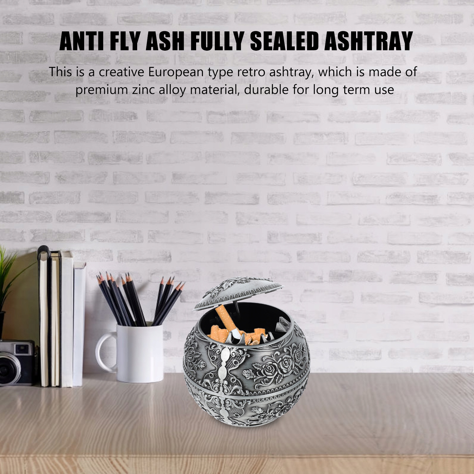 - Це креативна попільничка в європейському стилі в стилі ретро, виготовлена зі сплаву цинку преміум-класу, надійна для тривалого використання. Дизайн в стилі ретро забезпечить йому популярність і практичність серед людей. Він також може бути прикрасою вашого дому, офісу, бару, клубу тощо.
