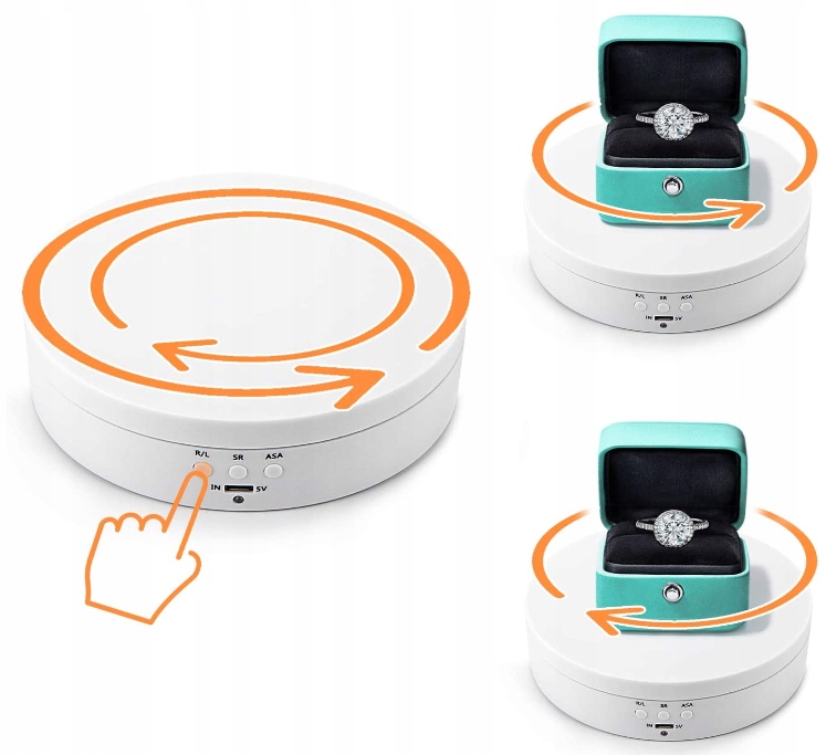 💎Електричний дисплейний стіл має конструкцію, що обертається на 360 градусів, яка може вручну регулювати швидкість і напрямок обертання. Електричний поворотний стіл підтримує обертання як за годинниковою стрілкою, так і проти неї. І вони дозволяють фотографу знімати під кутом 360 градусів, створюючи ідеальний ефект експозиції.