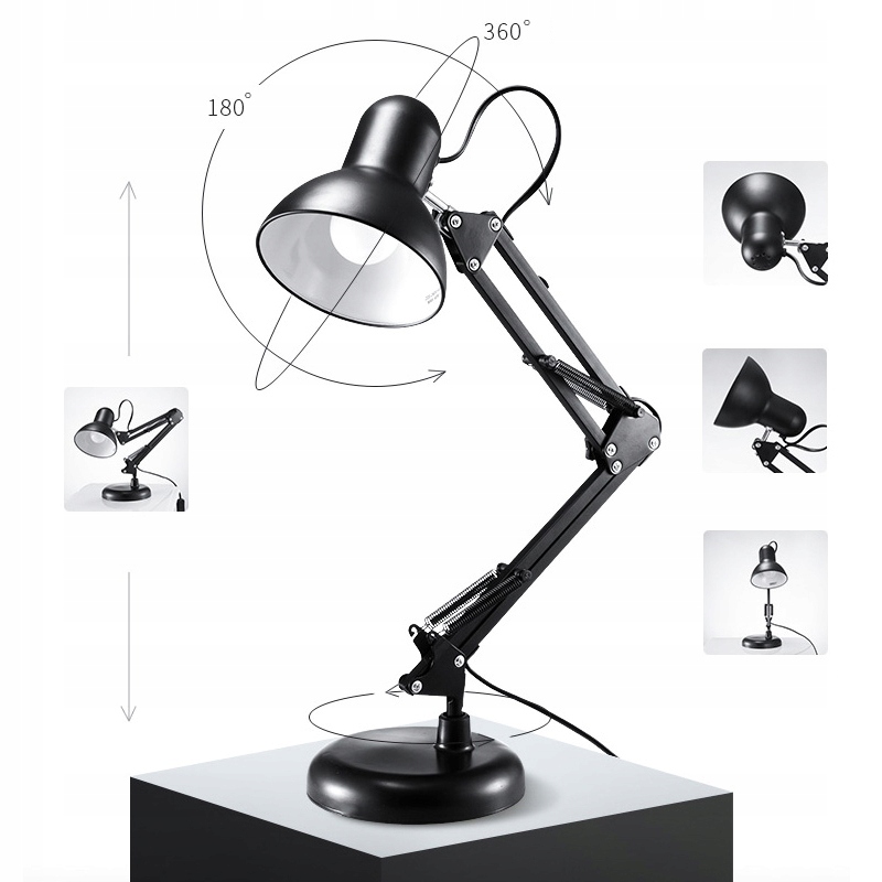 Лампа має широкі можливості комплектації. Поворотна основа на 360°, рухливі кронштейни та можливість точного спрямування світла дозволять вам ідеально освітлити робоче місце. Завдяки його простій конструкції ви можете легко знайти зручне налаштування, яке дозволить максимально використовувати простір вашого столу, а кабель довжиною 160 см дозволить вам розмістити лампу в зручному місці.