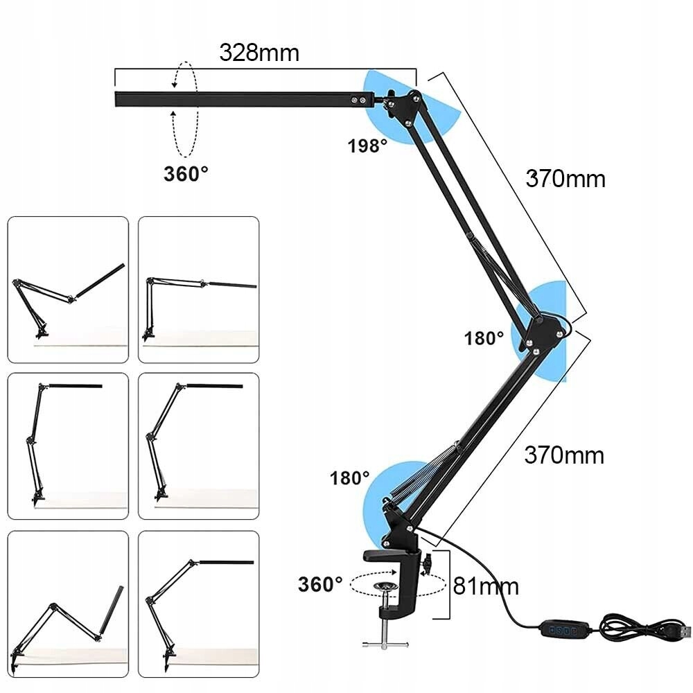 - 💡 -【обертання на 360 градусів】: тріосія, кут може бути вільно відрегульований, головку лампи може бути обертається на 360 градусів, а напрямок освітлення можна регулювати відповідно до особистих потреб. Підходить для більшості офісних кімнат та столів. Алюмінієвий кліп, прикріплений до навчального столу товщиною 5,8 см, високої стабільності. 4 4 Він має термін служби до 10 000 годин. Просто підключіть USB -кабель до доступного USB -порту.
