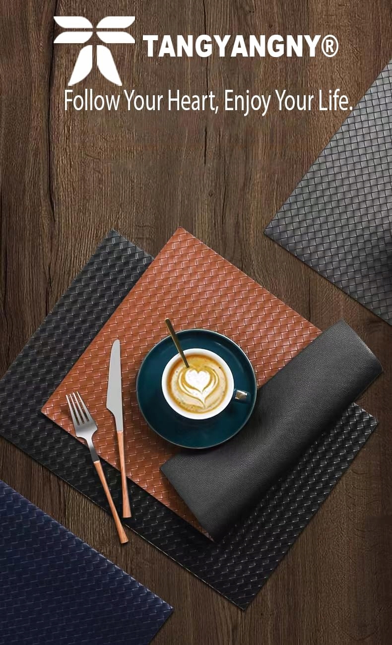 - - високоякісні матеріали: наші настільні прокладки ретельно розроблені та виготовлені з чудових штучних шкіряних матеріалів із структурою шкіри. Краї настільки оброблені, що вони не тріскаються і можуть використовуватися протягом тривалого часу. Ідеальний розмір: 43 х 30 см (17 х 11,8 дюйма), 4 х шайба, 4 х підставка; 4 Крім того, він ефективно запобігає утворенню подряпин, бруду або відбілюючих столів та меблів.