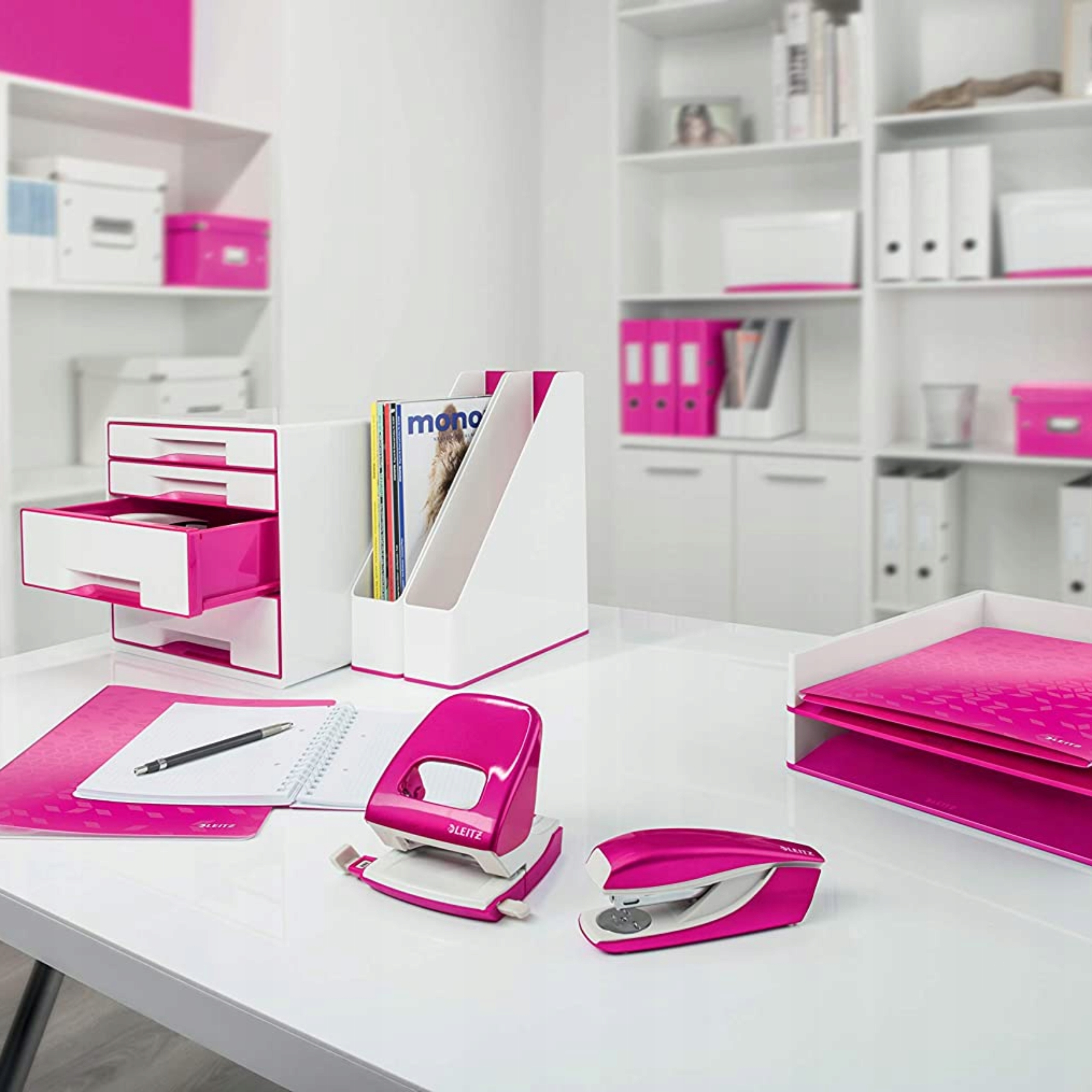 міні leitz wow рожевий степлер і отвір металевий міні -набір у модних кольорах для повсякденного використання. Найвища якість, компактний степлер та удар. Підходить для офісу та зручно для подорожей.