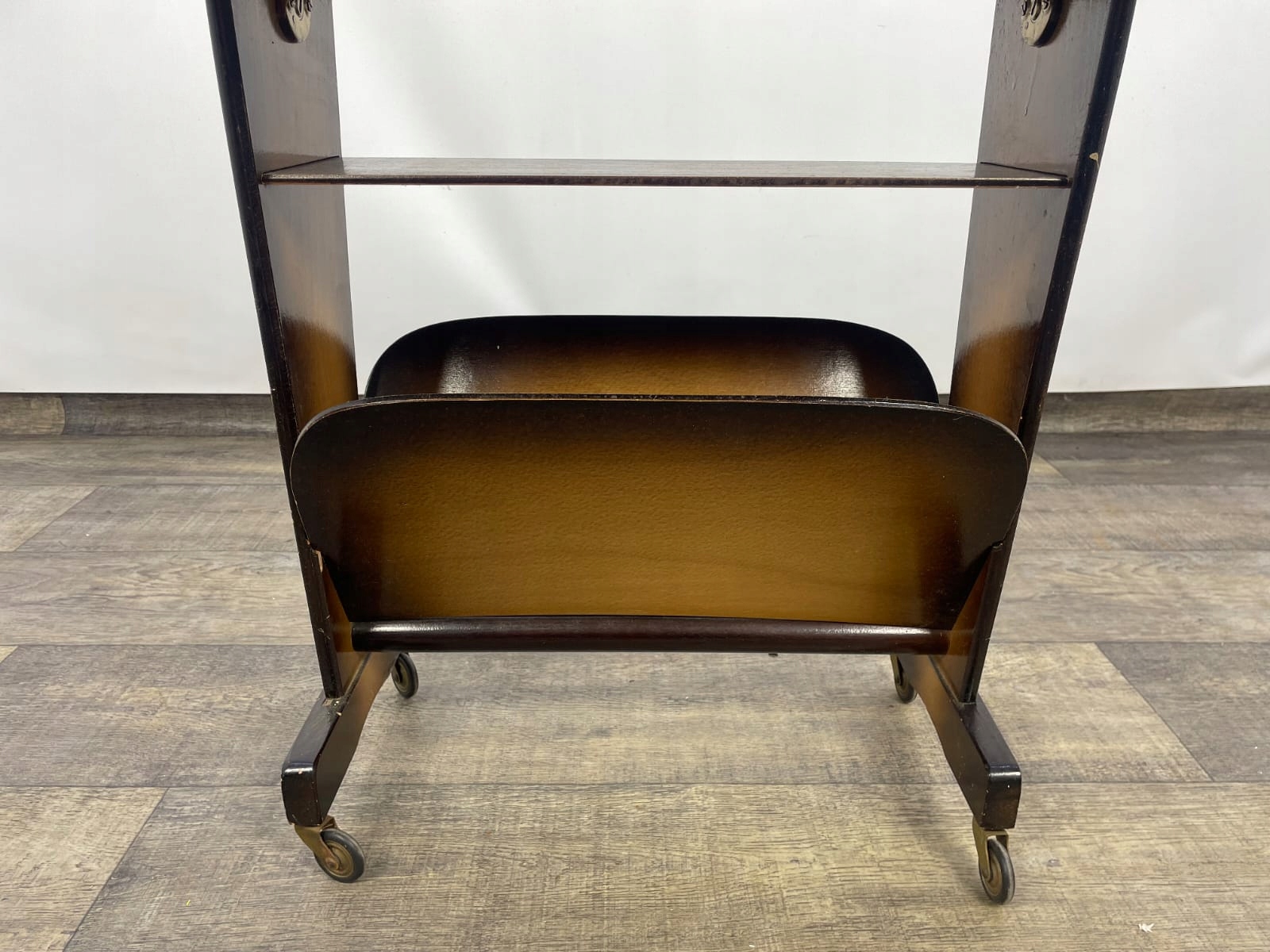 Зверху тримач для газет має декоративне оздоблення, типове для цього типу меблів.