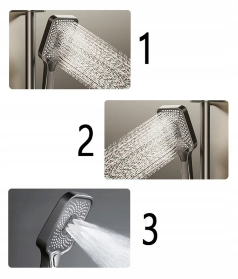 ✔️Душова лійка -3-функціональна душова лійка включає дощ і масажний струмінь . Просто обережно натисніть кнопку на панелі душової лійки, щоб легко перемикати режими та насолоджуватися приємним душем.