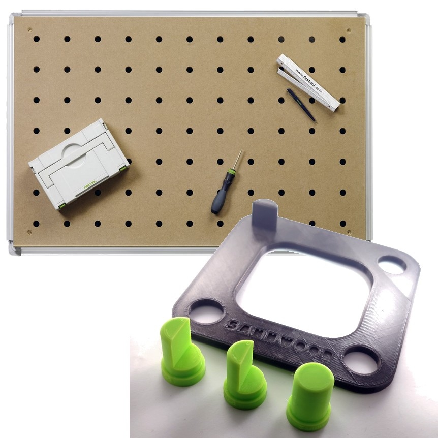 Пристрій, який допомагає вирізати рівні отвори в робочому столі у формі столу Festool MFT.