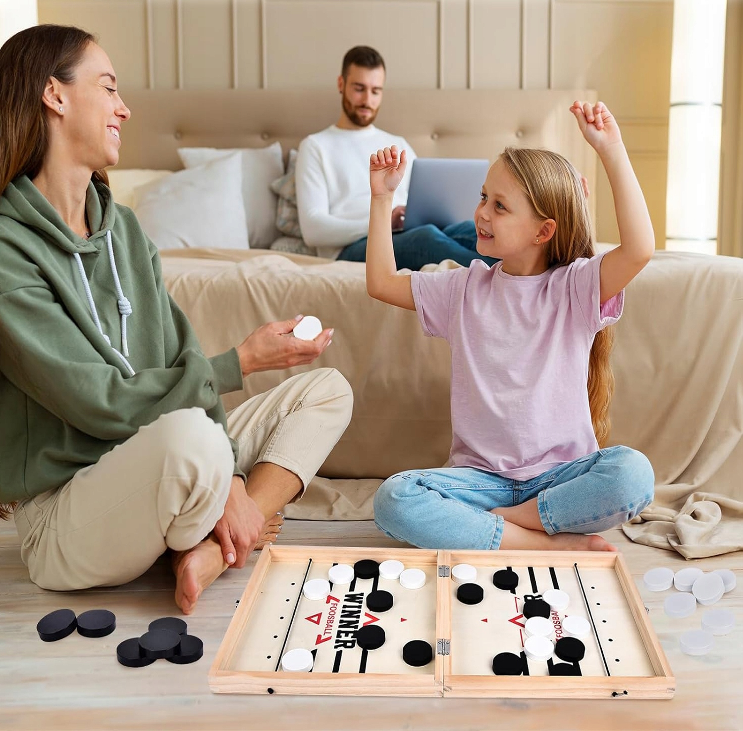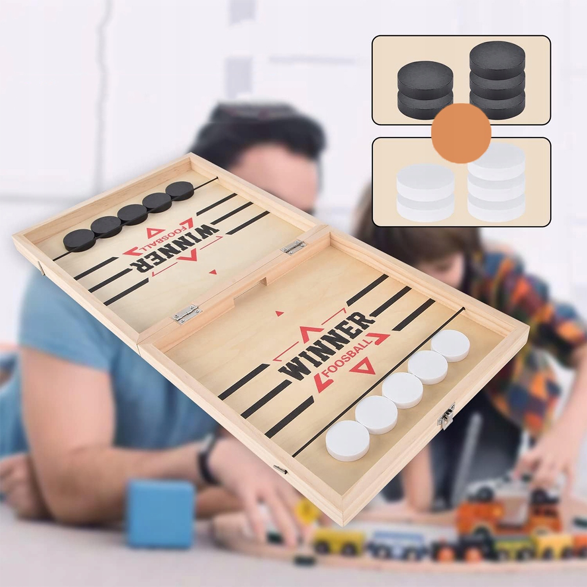 Спортивна настільна гра для 2 гравців, прості правила, ідеально підходить для групових обговорень і спілкування з родиною та друзями! Ви можете грати з дитиною та тренувати її координацію рук і очей і концентрацію.