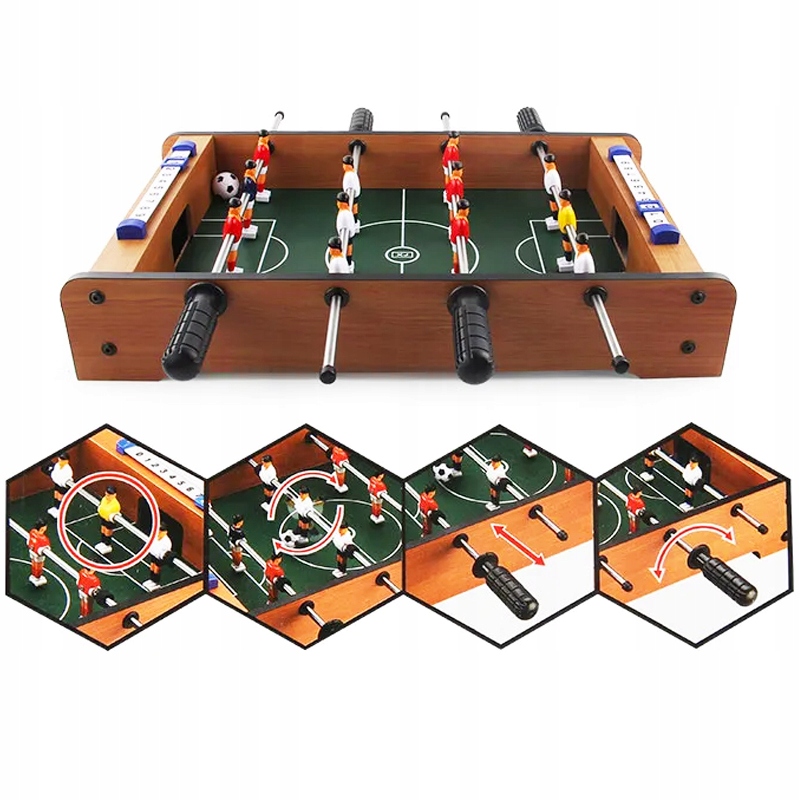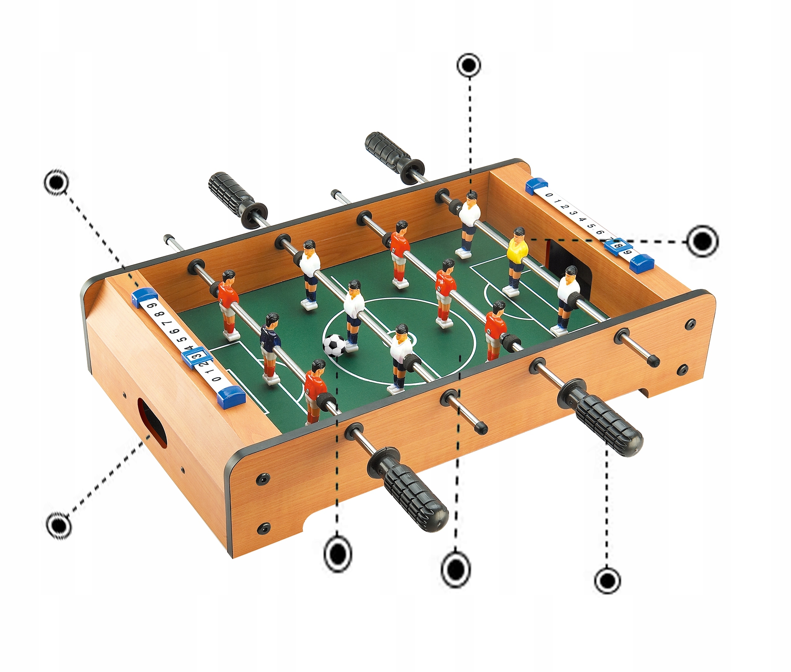 Стіл масивний, з дерев'яної конструкції, з кольоровою фурнітурою. Обладнаний голами з лічильником голів - що зробить гру ефективнішою. Протиковзкі ручки сприятимуть захоплюючій грі.