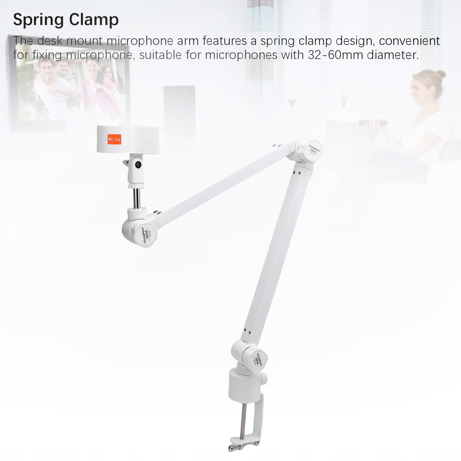1. Пружинний затискач: настільний мікрофон має пружинну конструкцію, зручну для кріплення мікрофона, підходить для мікрофонів діаметром 32-60 мм.
