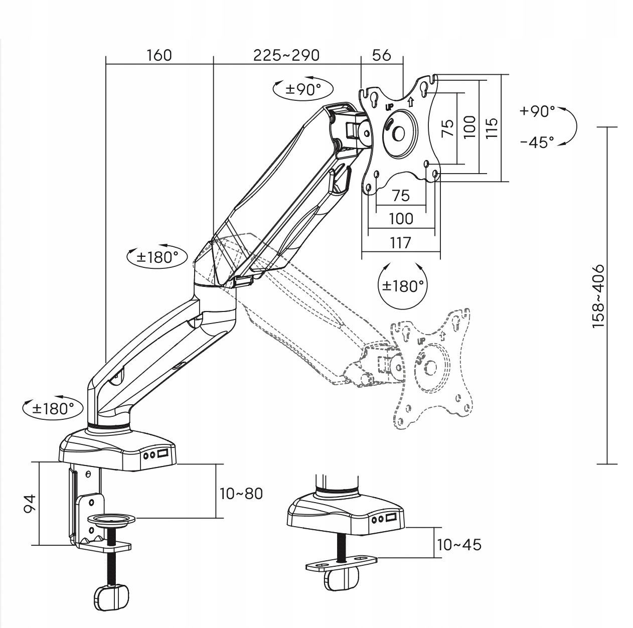 ✅ Тримач може регулювати кут нахилу від +90° до -45°.