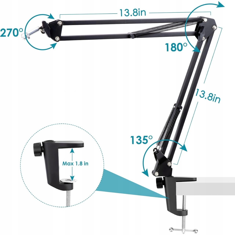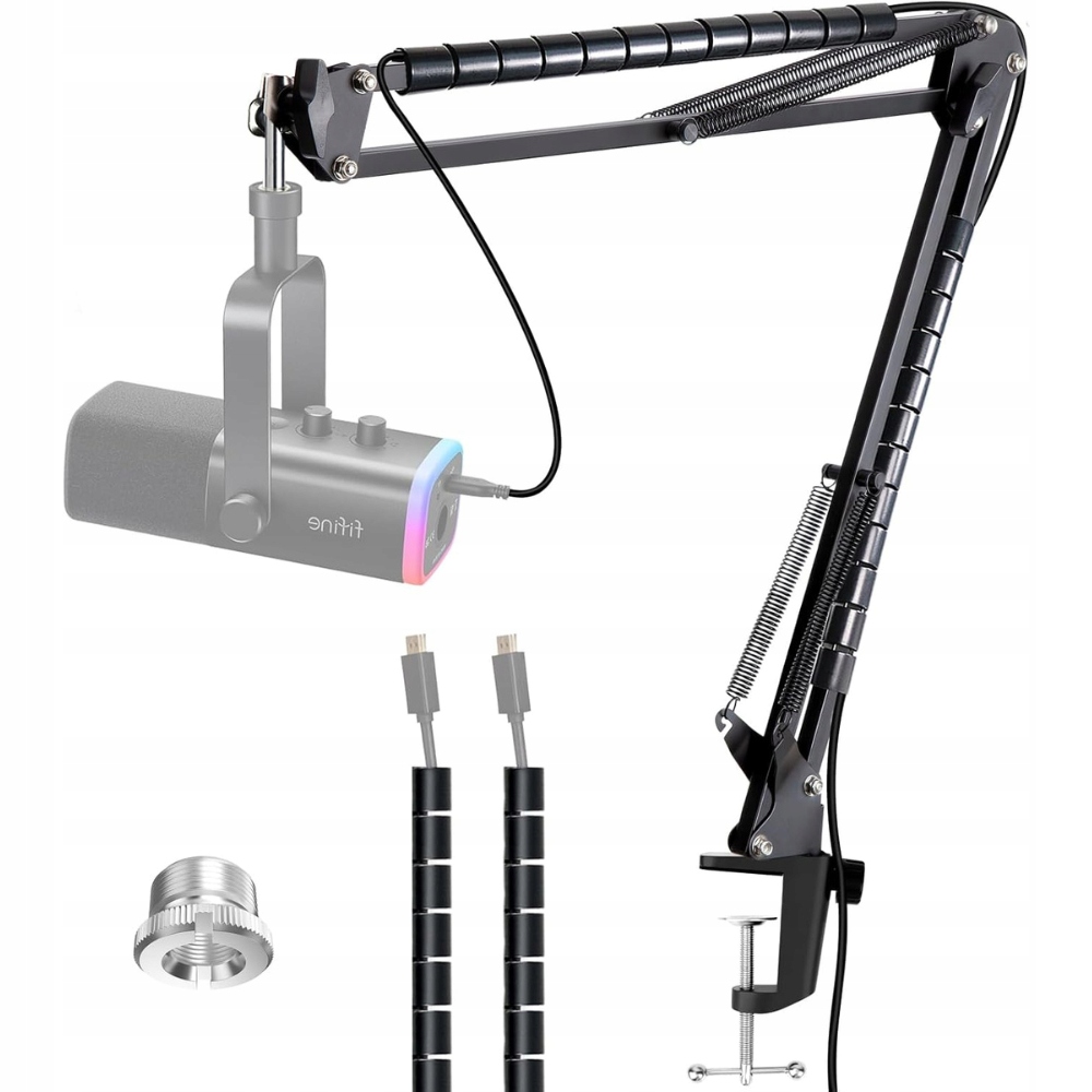 Встановлення навісного мікрофона займає менше 5 хвилин. Настільний затискач, що входить у комплект, дозволяє швидко та міцно під’єднати вас до столу, а дві кінцеві насадки допоможуть вам організувати охайну кабіну для запису.