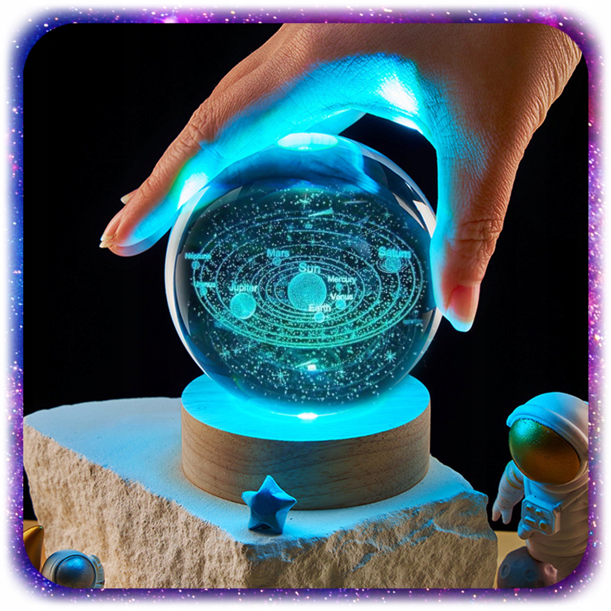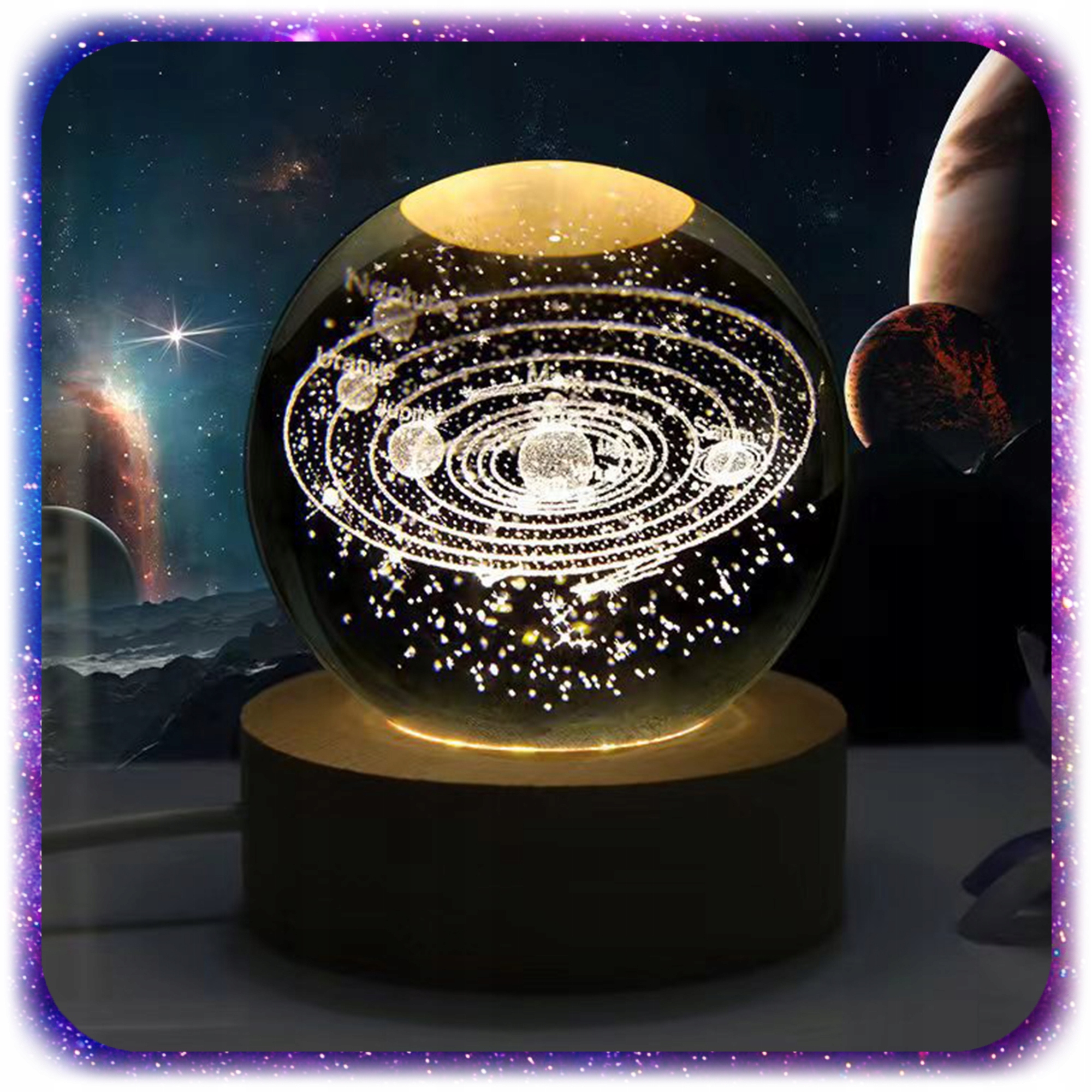 ⚡️ Скляна куля з унікальним космічним мотивом створює унікальний ефект освітлення, який додає магії будь-якій кімнаті. Тонке, м’яке світло дозволяє створити затишну атмосферу, яка ідеально підходить для відпочинку та спокійного сну.