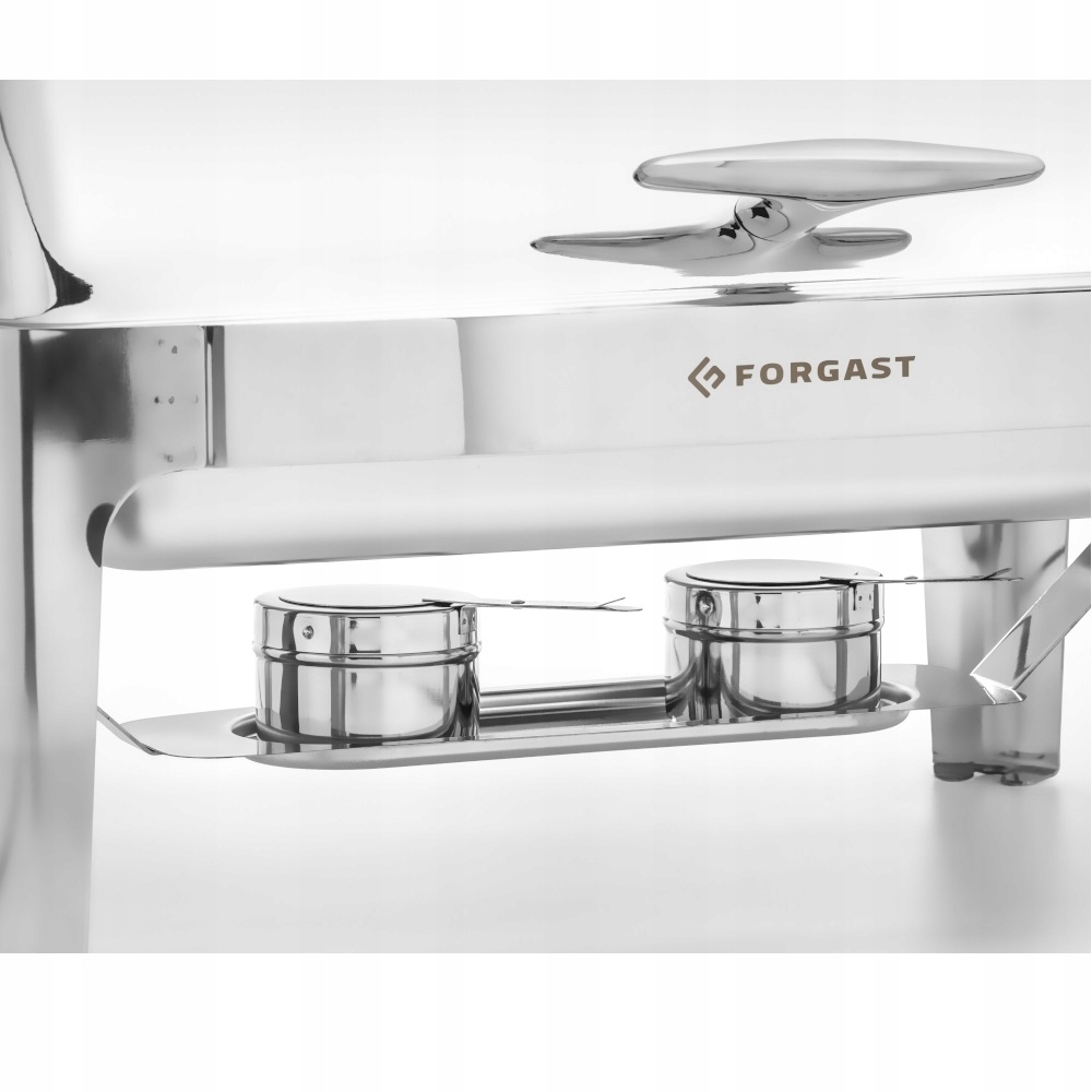 Настільна підігрівач GN 1/1 від Forgast - ідеально підходить для професійних фуршетів, весільних залів і кейтерингу. Рулонна кришка, що відкривається на 180°, полегшує роботу, забезпечуючи легкий доступ до їжі. Стійка конструкція гарантує безпечне використання. Обігрівач Forgast об'ємом 9 літрів і двома паливними баками є ефективним і економічним рішенням для підтримки ідеальної температури їжі. Високоякісні матеріали, як-от нержавіюча сталь, забезпечують довговічність і легкість обслуговування.