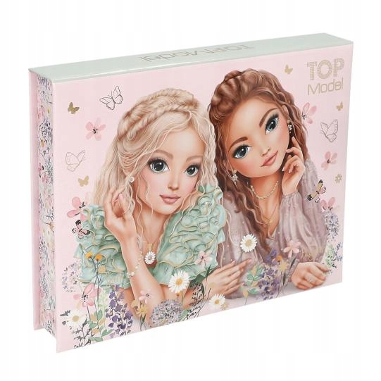 Все для вашого робочого столу: канцелярська коробка від TOPModel містить 3 кольорові олівці з мотивами моделей, 1 гумку з принтом, 100 красиво ілюстрованих карток для нотаток і 25 світло-рожевих скріпок. Сама коробка неймовірно красива: ніжний рожевий і модний шавлієво-зелений, гарний мотив моделей, а також ніжні квіти і метелики. На кришці всередині коробки є дзеркало.