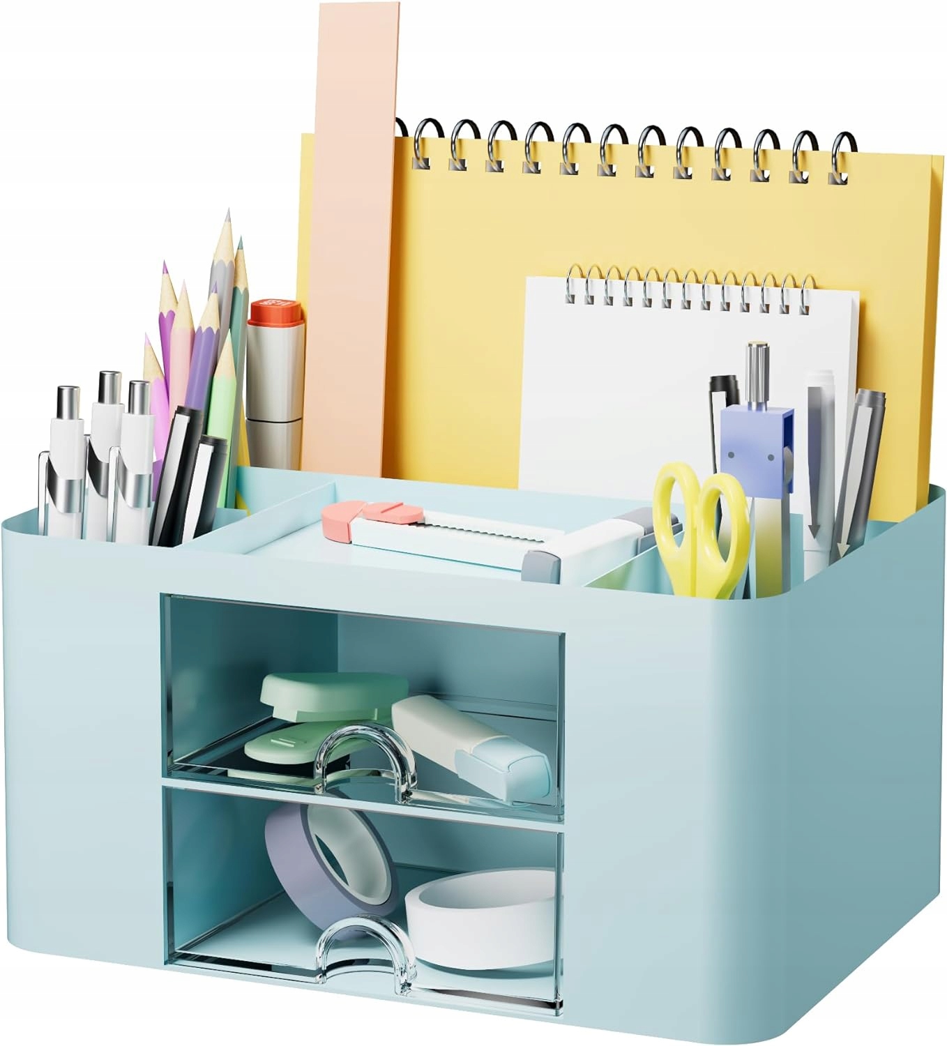 НАСТІЛЬНИЙ ОРГАНІЗАТОР МАЛЕНЬКИЙ тримач для ручок + шухляда СИНИЙ