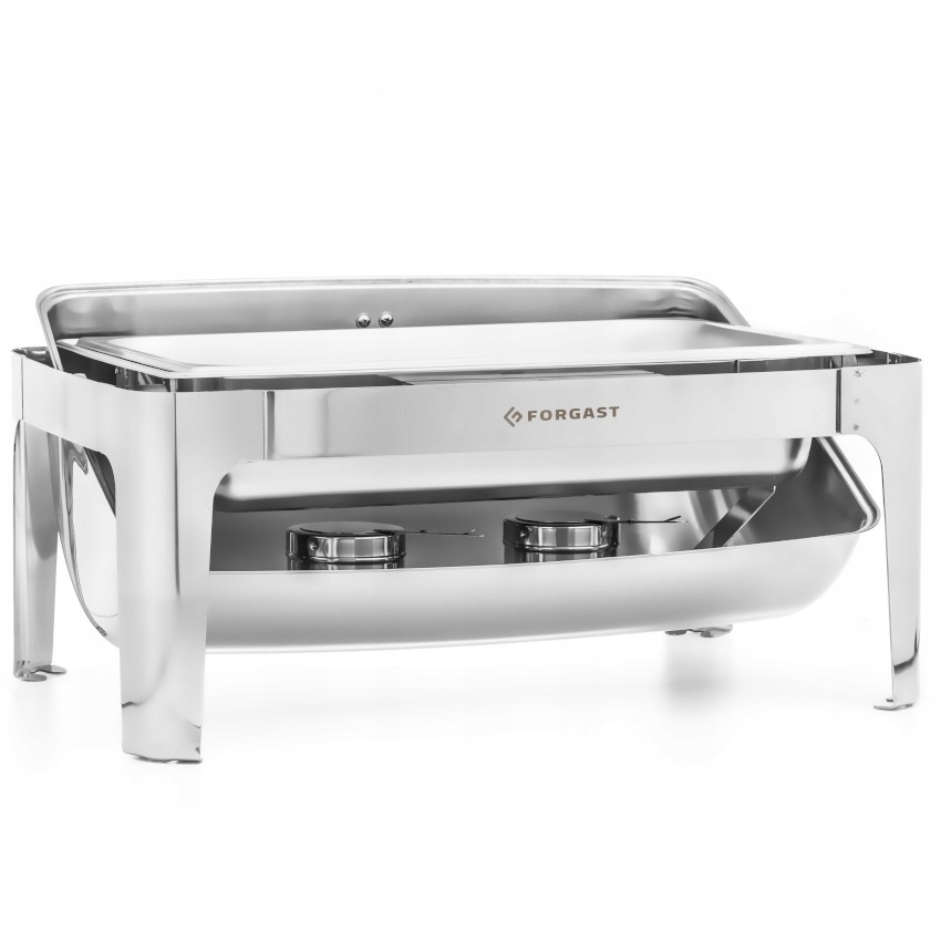 Настільна підігрівач GN 1/1 від Forgast - ідеально підходить для професійних фуршетів, весільних залів і кейтерингу. Рулонна кришка, що відкривається на 180°, полегшує роботу, забезпечуючи легкий доступ до їжі. Стійка конструкція гарантує безпечне використання. Обігрівач Forgast об'ємом 9 літрів і двома паливними баками є ефективним і економічним рішенням для підтримки ідеальної температури їжі. Високоякісні матеріали, як-от нержавіюча сталь, забезпечують довговічність і легкість обслуговування.