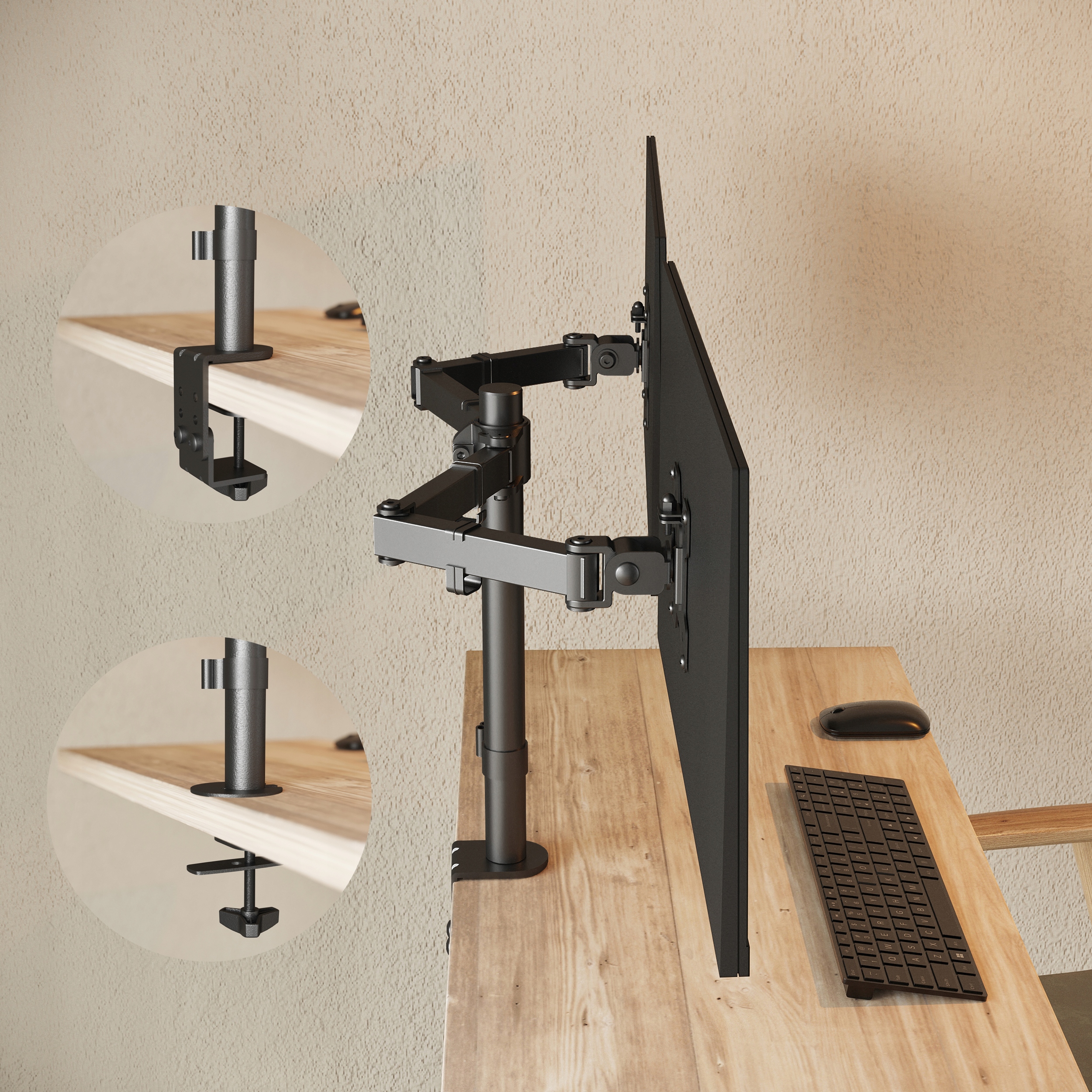 Завдяки нашому тримачу працювати з двома моніторами комп’ютера стане ще легше. Відтепер ви можете перевести свій монітор із вертикального положення на горизонтальне й навпаки лише за секунду. Ця функція буде особливо корисною для людей, які працюють із великими електронними таблицями чи графікою.