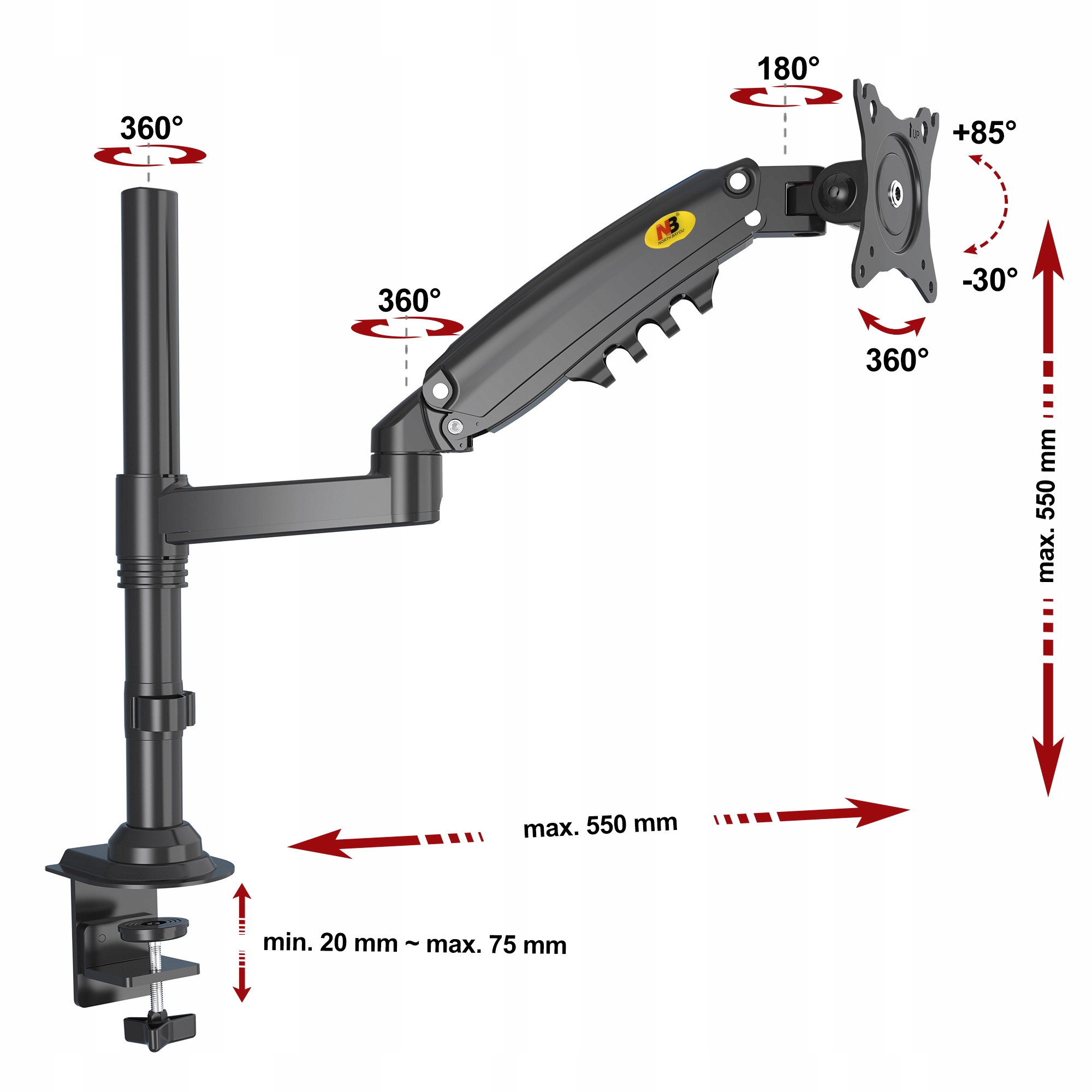 - регулювання газової пружини під вагу монітора від 2 до 9 кг