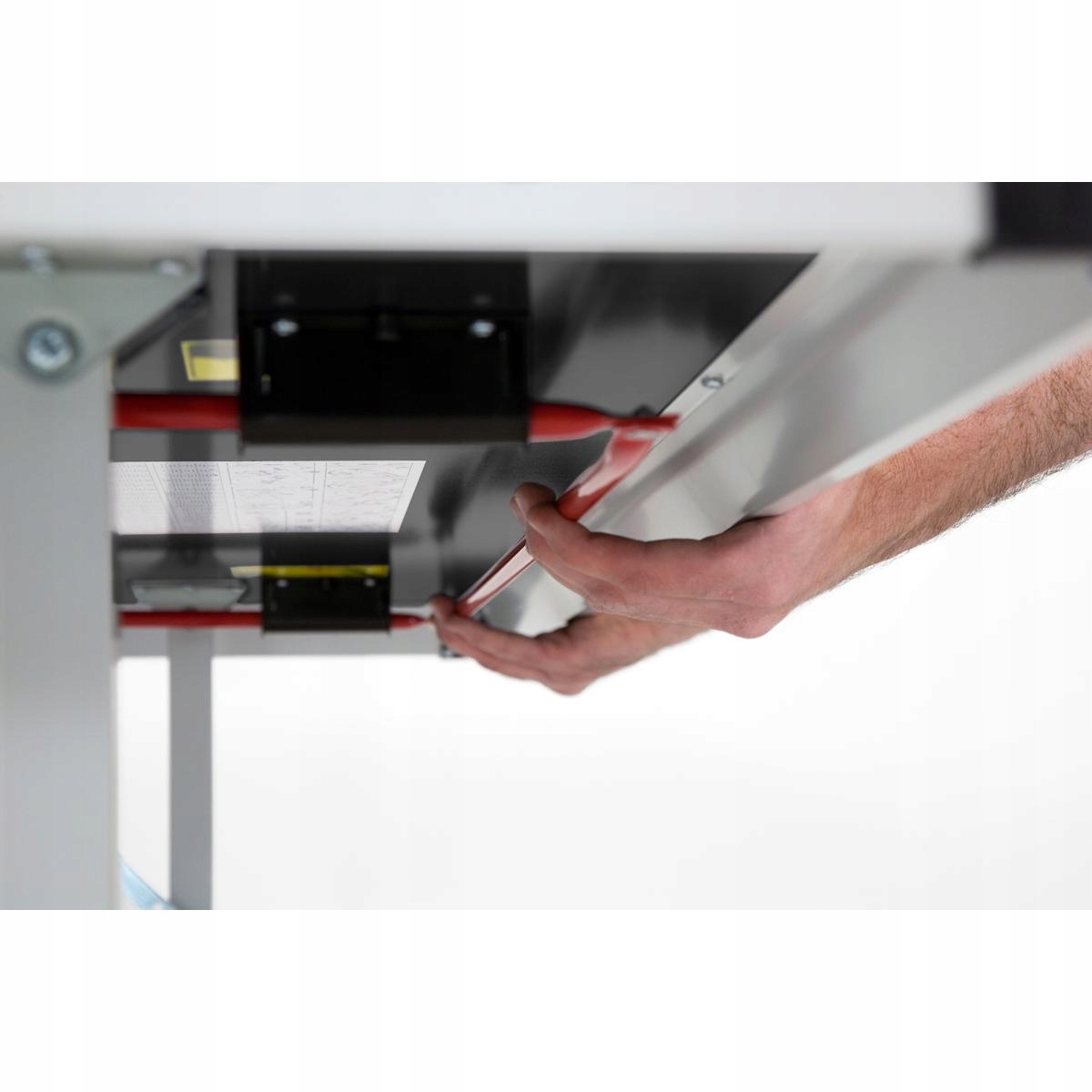 - Ручка з металевою ручкою під столом відмикає обидва замки одночасно