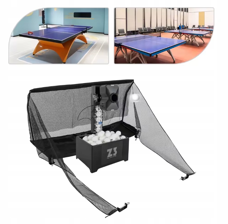 Професійна автоматична машина для настільного тенісу з 10 режимами, дистанційним керуванням 2.4G і великою сіткою для збору м’ячів. У набір входять 100 м’ячів з АБС-пластику та зручний підхват, щоб тренуватися без перерв – вдома, в школі чи клубі.