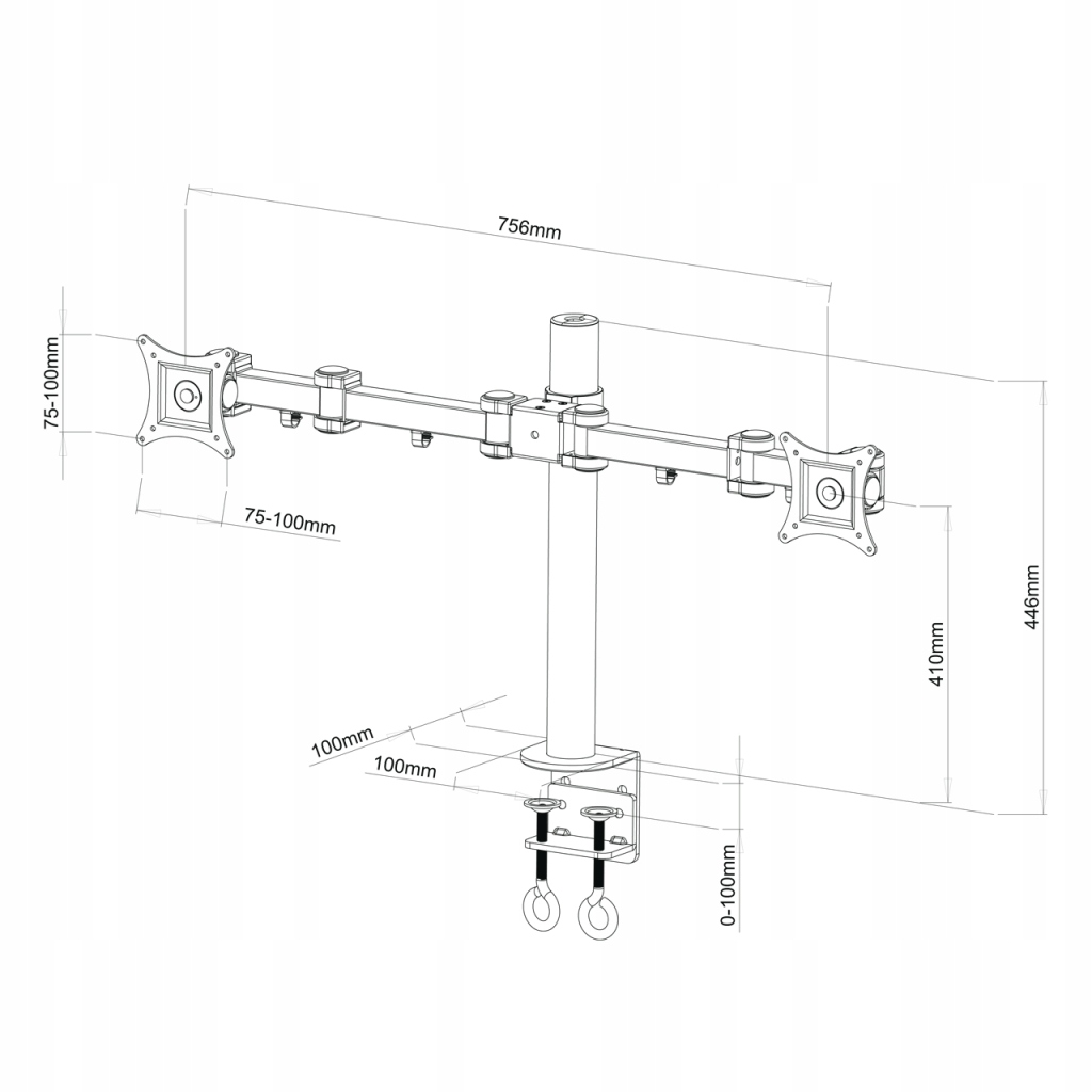 Включає відстань між отворами з розмірами 75 х 75 мм і 100 х 100 мм, що забезпечує підтримку різних моделей моніторів.