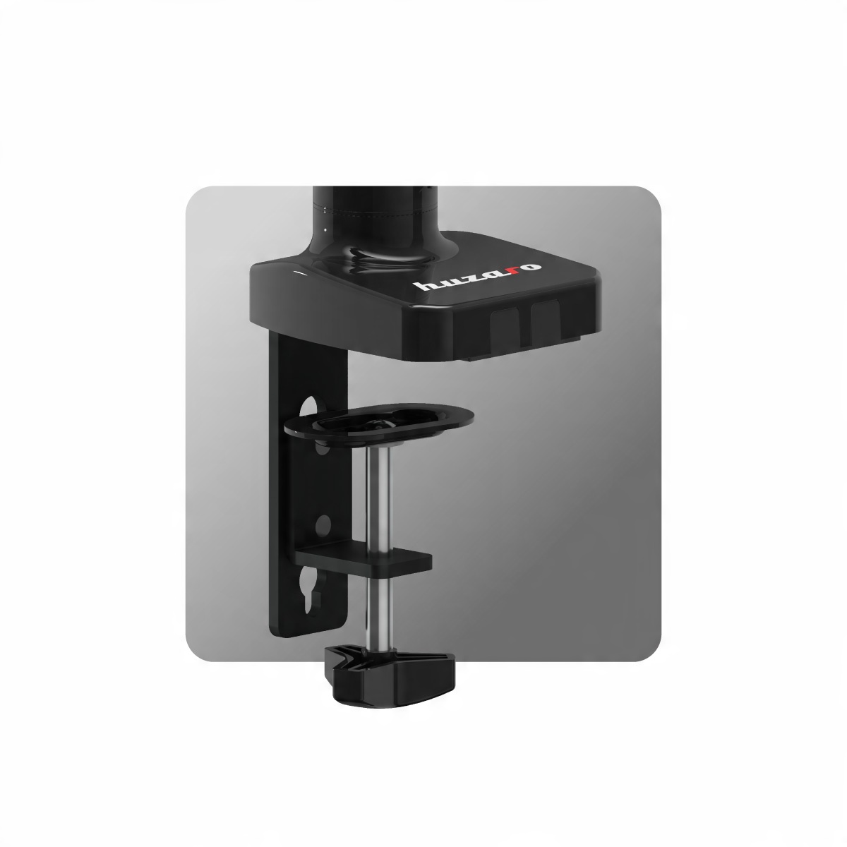 Завдяки універсальному, стійкому механізму кріплення кріплення тримача до стільниці надзвичайно просте, а вся конструкція жорстко з’єднана зі столом. Різні положення отворів дозволяють регулювати висоту установки відповідно до ваших уподобань. Motion 1.2 підходить для стільниці з максимальною товщиною 10 см.