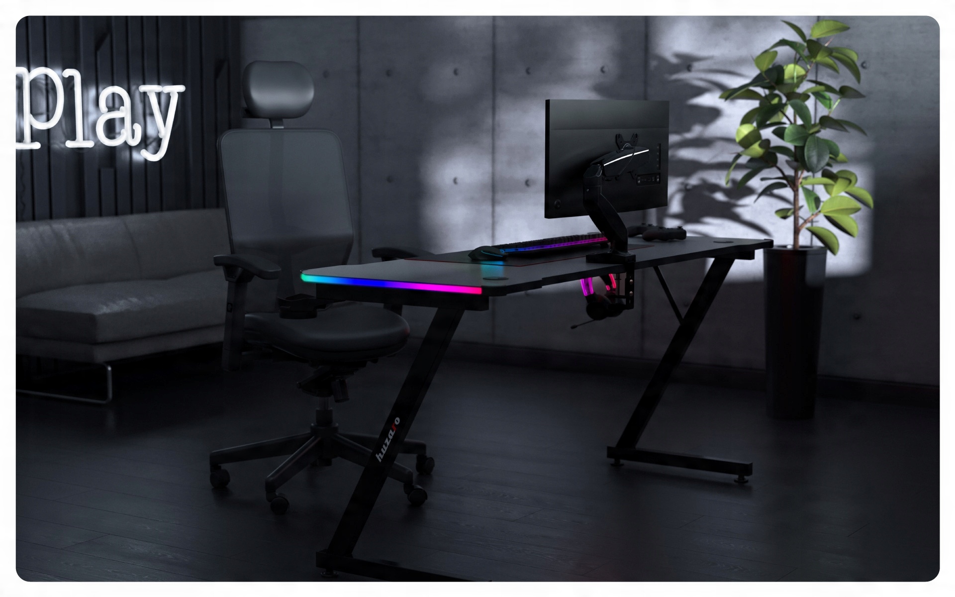 Система управління кабелями, прихована від очей, покращує естетику всієї ігрової станції та захищає кабелі від випадкового пошкодження. Тримач не тільки відображає монітор, але й допомагає організувати простір на столі.
