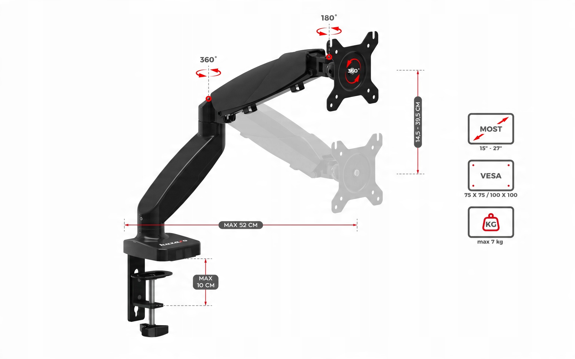 Настільний тримач для монітора, поворотний, РЕГУЛЬОВАНИЙ Huzaro Motion 1.2