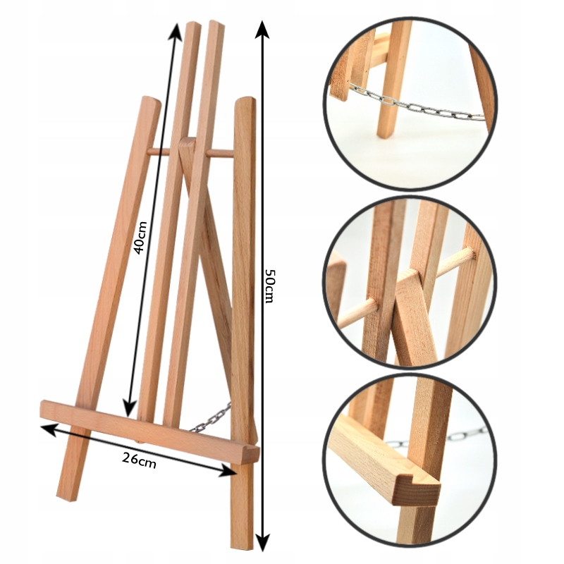 Мольберт можна встановити під будь-яким кутом, залежно від потреби, за допомогою стрічки, прикріпленої до ланцюжка.