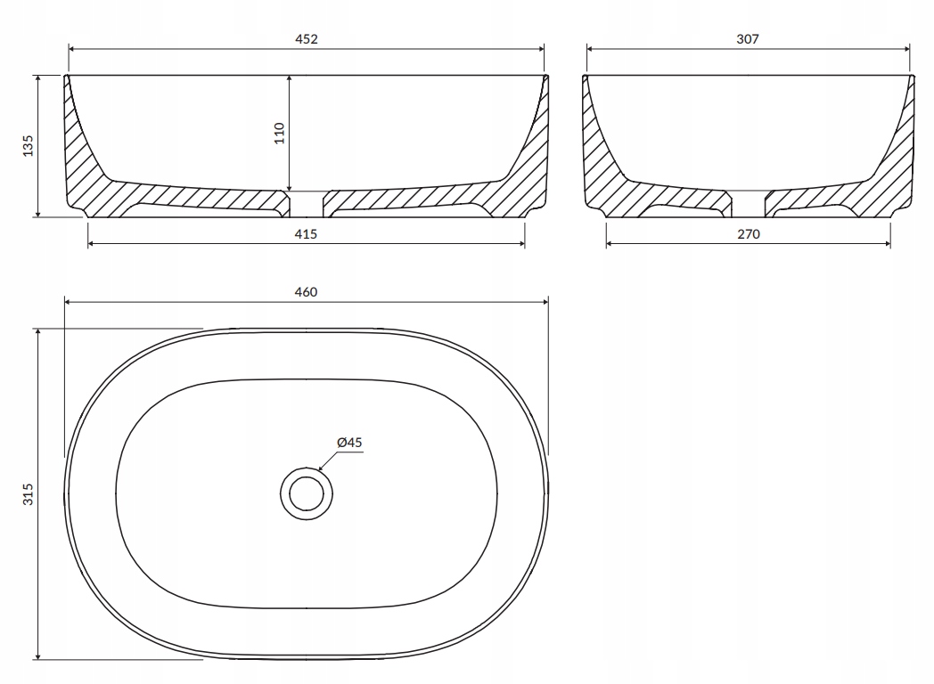 Умивальник виготовлено з кераміки найвищої якості з високими гігієнічними властивостями.