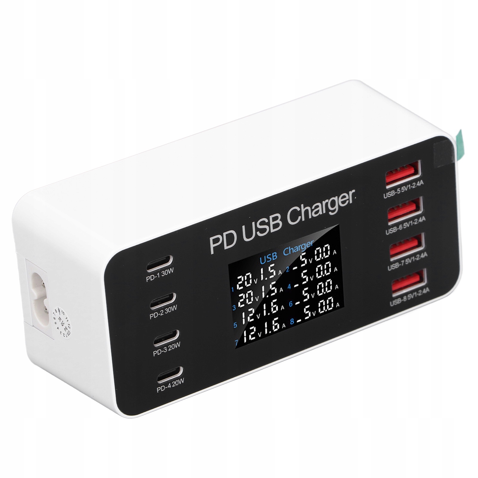 Настільний USB-зарядний пристрій, 8 портів PD, 30 Вт, цифровий дисплей, USB-станція J1