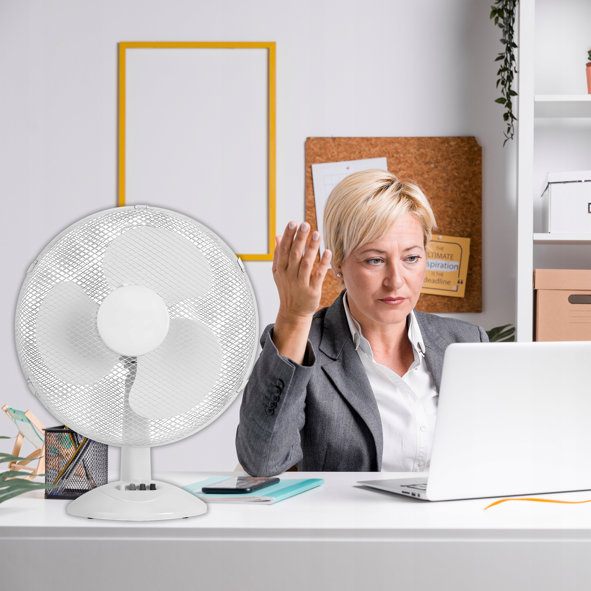 Наш сучасний і надійний настільний вентиляторзабезпечить ідеальну циркуляцію нагрітого повітря навіть у дуже спекотні дні. Пристрій оснащений ротором із 3 лопатями забезпечує рівномірний потік повітря. Функція коливання гарантує, що повітря досягне кожної частини кімнати.