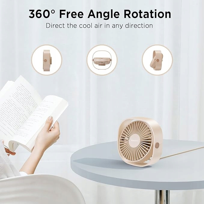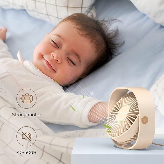 Портативний USB-вентилятор EasyAcc mini — ідеальне рішення для людей, які шукають ефективний і компактний пристрій для офісу, дому або під час подорожей. Цей компактний вентилятор діаметром 4,8 дюйма, який важить лише 6 унцій, легко поміститься на будь-якому столі, водночас створюючи освіжаючий вітер.