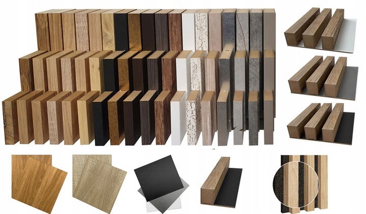 - Матеріал: Ламелі виготовлені з МДФ плити, покритої високоякісним декоративним шпоном