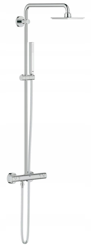 Душова система Euphoria System 150 забезпечує потік 7 л/хв, підходить для проточних нагрівачів потужністю хв. 18 кВт. Його колір - стильний хром, і він обов'язково стане доповненням до будь-якої ванної кімнати. Є можливість розширити обладнання полицею GROHE EasyReach (26 362 LN0), яку необхідно замовляти окремо.