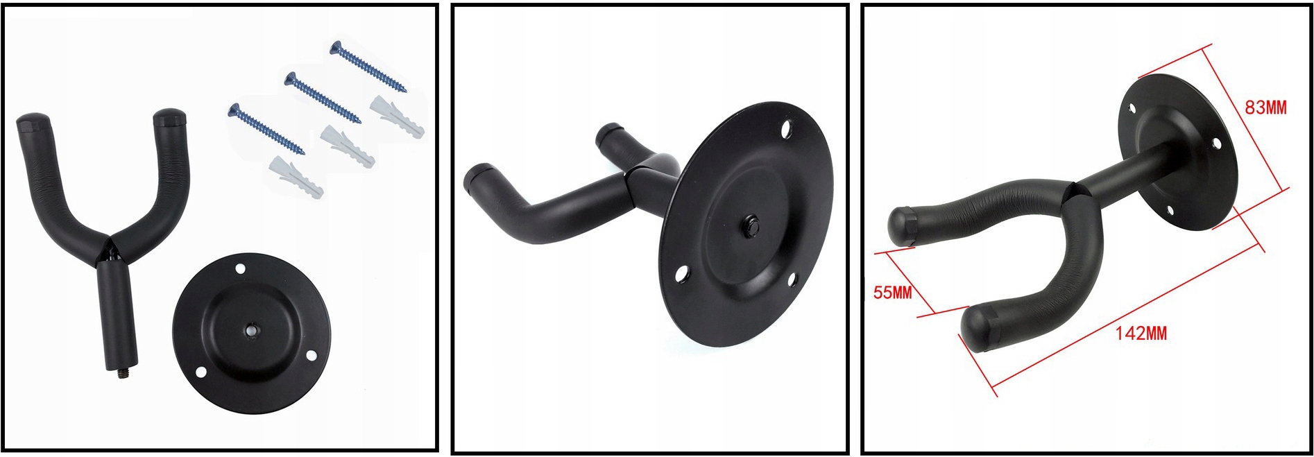 ➡️Настінна вішалка для гітари – компактна та міцна, чорного кольору