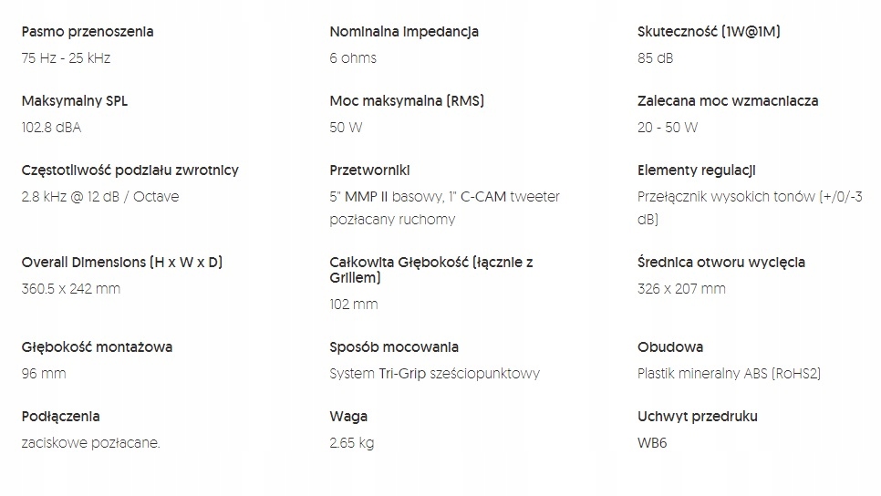 - Нашу інноваційну систему кріплення Tri-Grip легше встановлювати, ніж інші традиційні рішення, а динамік набагато щільніше прилягає до отвору в стелі, що забезпечує кращі, сильніші баси та чистіші середні частоти.
