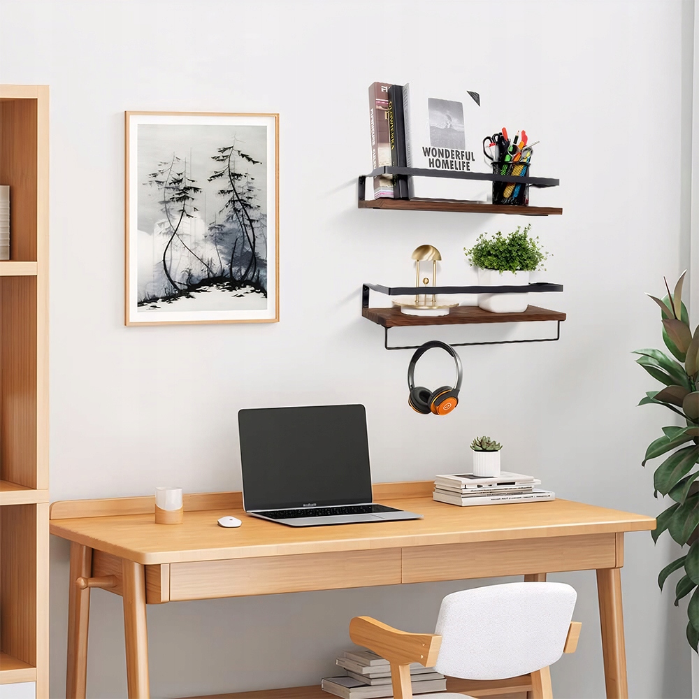 🫙【Настінна полиця】 Дерев’яні дошки ідеально поєднуються з промисловими металевими ручками для мінімалістичного та сучасного дизайну! Ці плаваючі полиці універсальні, підходять до різноманітних стилів інтер'єру та можуть бути встановлені у вітальні, ванній кімнаті, спальні, кухні чи офісі.