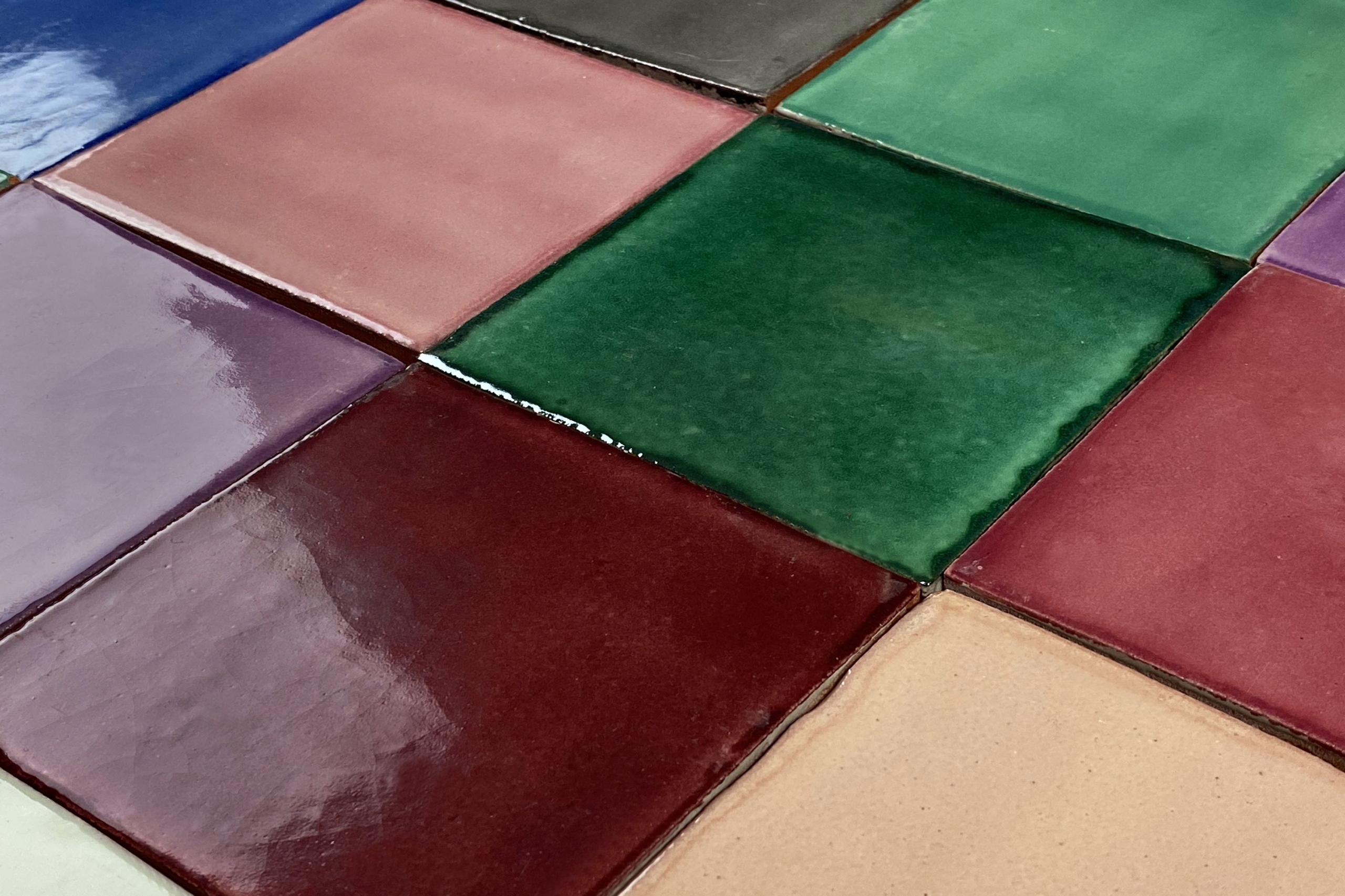 Мексиканська одноколірна плитка, глазурована, укладена в печворк, що складається з 90 частин, розміром 10,5 см x 10,5 см. Плитка виготовляється традиційними методами, взятими з іспанського методу виробництва талавери.