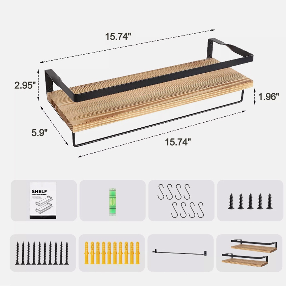 ✔ ✔ ✔ ✔ ✔ ✔ ✔ ✔ ✔ ✔ ✔ ✔ ✔ ✔ тверда та міцна конструкція】 , виготовлена з високоякісної залізної та твердої деревини, ці спеції стабільні, довговічні та мають високу здатність до навантаження, що забезпечує тривалий термін використання. На передньому кінці полиці є обмежувач дроту, який ефективно запобігає падінню предметів. Найкращий розмір для додаткових предметів: 40 см*15 см*7,5 см