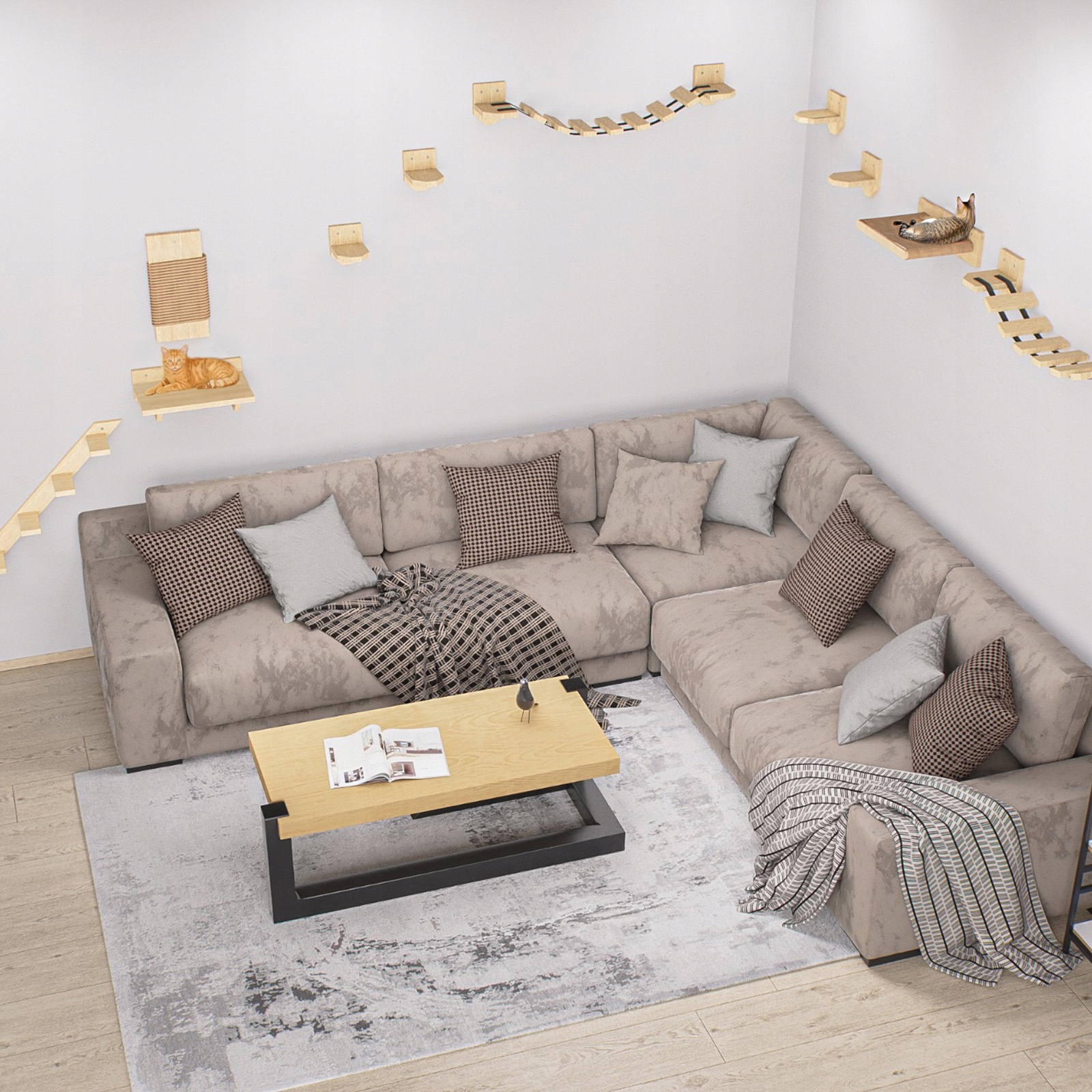 - ступінь (полиця) може використовуватися незалежно як частина існуючої конфігурації котячої стіни для сходження або в поєднанні з іншими елементами, щоб створити персоналізоване та різноманітне сходження на підйом для ваших котів.