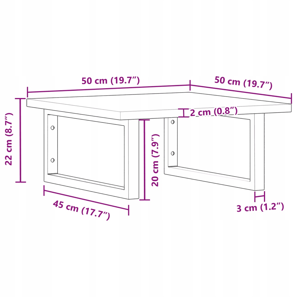 - Розміри опори стільниці: 20 x 45 см (ширина x довжина)